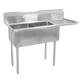 18GA Compartment Sinks, 2-Bowl, 1 Drainboard, 12″ Deep Bowl (E-SERIES) – 18″ x 18″ x 12″ – RH