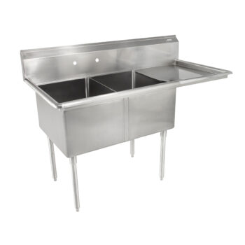 18GA Compartment Sinks, 2-Bowl, 1 Drainboard, 14″ Deep Bowl (E-SERIES) – 24″ x 24″ x 14 – RH – 24″