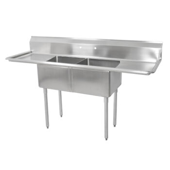 18GA Compartment Sinks, 2-Bowl, 2 Drainboard, 12″ Deep Bowl (E-SERIES) – 16″ x 20″ x 12″ – LH & RH – 18″