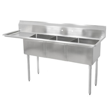 18GA Compartment Sinks, 3-Bowl, 1 Drainboard, 12″ Deep Bowl (E-SERIES) – 16″ x 20″ x 12″ – RH – 18″