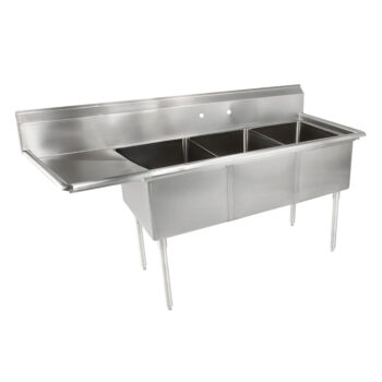 18GA Compartment Sinks, 3-Bowl, 1 Drainboard, 14″ Deep Bowl (E-SERIES) – 18″ x 24″ x 14″ – LH – 24″