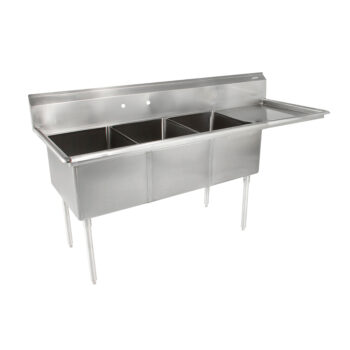 18GA Compartment Sinks, 3-Bowl, 1 Drainboard, 14″ Deep Bowl (E-SERIES) – 18″ x 24″ x 14″ – RH – 24″
