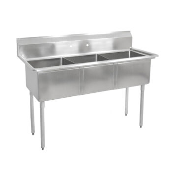 18GA Compartment Sinks, 3-Bowl, Without Drainboard, 12″ Deep Bowl (E-Series) – 18″ x 18″ x 12″