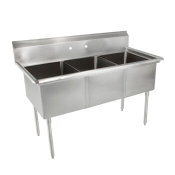 18GA Compartment Sinks, 3-Bowl, Without Drainboard, 14″ Deep Bowl (E-Series) – 15″ x 15″ x 14″