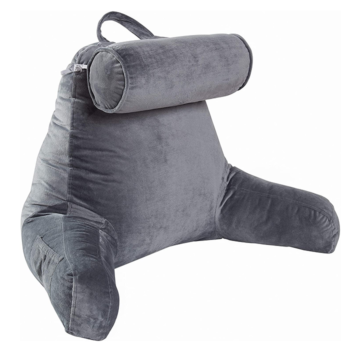 Backrest TV & Reading Pillow with Detachable Neck Bolster – Gray