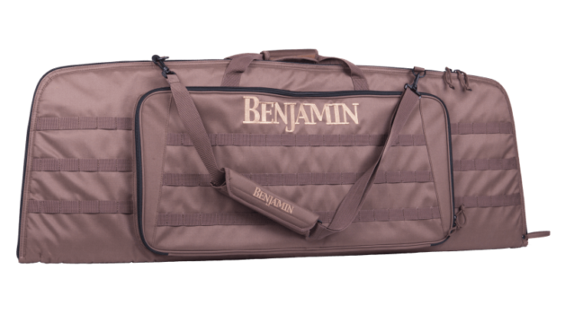 This top-quality air rifle soft case is just what you need to carry your Benjamin in style. It’s a soft-side case with molle webbing and ample storage space. The case features a convenient outer pocket (13” tall x 28” wide) with rugged dual zippers that ensure your accessories stay secured. The case itself is 48″ long x 15″ tall, giving you plenty of room for your Benjamin. With three rows of molle webbing on the front and back sides, this air rifle soft case is durable enough to take in the field or to the range. At home, the handy hanging loop provides an easy storage solution. The padded, embroidered carry handle is made to last, and this air rifle case even includes a removable, padded carry sling.