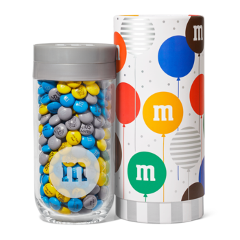 Jar up all the birthday magic with help from M&M’S® chocolate candies. Your own custom blend comes inside our Gift Jar, ready to make someone’s special day even sweeter. And like icing on the birthday cake, you get to choose a lid to top it off. Pick between a red or silver branded lid and it will be packaged into a birthday themed tube.
