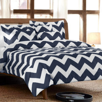 Chevron 7-Piece Comforter Set – Queen – White/Navy