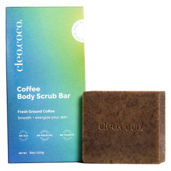 Description Cleo Coco Coffee Body Scrub Bar is a refreshing solid bar that has all the perks of a standard coffee scrub, but without any of the mess or waste. And at 6 oz, it’s a little more grande than our traditional body wash bars. This Cleo Coco Coffee Body Scrub Bar smells like an iced coconut milk latte It’s refreshing and slightly sweet, but not too strong. Responsibly sourced raw honey softens your skin, while caffeine-rich coffee grounds exfoliate and invigorate. Mineral-rich Moroccan clay absorbs toxins, too — leaving your skin feeling smooth and fresh.