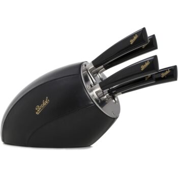 Knife block with 5 piece setSet of knives for different uses. Set designed so that you always have the perfect knife for slicing bread, carving a roast or ham. The paring, boning and kitchen knives ensure you have the right utensil for a wide range of preparations. They are stored in elegant knife blocks made using the finest materials by specialised craftsmen. An object which embellishes and completes the kitchen.