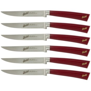 Set of table knives for meat dishesShort and user-friendly knife. Practical set for six diners. In virtue of its tip and smooth edge, this knife enables the precise cutting of cooked meat, thus limiting unsightly ragged cuts. Resistant to corrosion and cutting on ceramic plates, essential characteristics for everyday use.