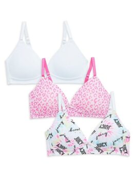 These soft bras finished with a dainty bow offer wire-free comfort. Set of three Adjustable shoulder straps Hook-and-eye back Polyester/spandex Hand wash Imported. Kids – Kids Non-apparel > Saks Off 5th > Barneys Warehouse. Juicy Couture. Color: Pink White. Size: 36 A. Size:34A
