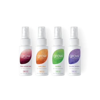 Description Grow Fragrance Air + Fabric Freshener Sample Pack is modern home fragrance that is 100% plant-based, toxin free & safe for your home. Grow Fragrance Air + Fabric Freshener Sample Pack has includes multiple scents. Final Sale Size: 2oz Also you may like: Grow Fragrance Air + Fabric Freshener See more Home Cleaning products Scents Cedar Citrus: has notes of blood orange, cedar and vetiver. Lavender Blossom: has notes of lavender, peony and citrus. Black Currant Rose: is a blend of fresh currant, modern rose and a touch of citrus. Bamboo: has notes of green foliage, citrus and pink peppercorn. Ingredients Cedar Citrus: Vetiveria Zizanoides Root Oil (Vetiver), Juniperus Mexicana Oil (Cedarwood), Grapefruit Peel Oil (Grapefruit), Bergamot Fruit Oil (Bergamot), Palmarosa Oil (Palmarosa), Ricinus Communis Seed Oil (Castor Seed Oil), Pogostemon Cablin Oil (Patchouli), Opoponax Oil (Sweet Myrrh), Ribes Nigrum Leaf Extract (Blackcurrant), Canarium Luzonicum (Elemi), Decanal (Naturally occurring in citrus), Octanal (Naturally occurring in citrus), Polyglyceryl-10 Caprylate / Caprate (Made from sustainably harvested palm, soy or coconut oil), Triethyl Citrate (Naturally occurring in oranges), Sodium Citrate (Natural salt of Citric acid), Glycerin (Made from sustainably harvested palm, soy or coconut oil), Alcohol (Naturally fermented from grains), Water Lavender Blossom: Lavandula Angustifolia Oil (Lavender), Lavandula Hybrida Oil (Lavandin), Rosa Damascena Flower Oil (Rose), Pelargonium Graveolens Flower Oil (Geranium), Citrus Aurantium Dulcis Peel Oil (Orange), Coriandrum Sativum Fruit Oil (Coriander), Juniperus Communis Fruit Oil (Juniper), Mentha Citrata Herb Oil (Bergamot Mint), Abies Sibirica Needle Oil (Siberian Fir), Artemisia Pallens Flower Oil (Davana), Boswellia Carterii Oil (Frankincense), Pogostemon Cablin Oil (Patchouli), Rosmarinus Officinalis Leaf Oil (Rosemary), Schinus Molle Oil (Pink Pepper), Mixed Ionones (Naturally occurring in blackberries and plum), Ethyl Acetoacetate (Naturally occurring in coffee), Isoamyl Butyrate (Naturally occurring in apricot), Phenethyl Acetate (Naturally occurring in cloves), Maltol (Naturally occurring in the bark of a larch tree), Raspberry Ketone (Naturally occurring in raspberries), Polyglyceryl-10 Caprylate / Caprate (Made from sustainably harvested palm, soy or coconut oil), Triethyl Citrate (Naturally occurring in oranges), Sodium Citrate (Natural salt of Citric acid), Glycerin (Made from sustainably harvested palm, soy or coconut oil), Alcohol (Naturally fermented from grains), Water Black Currant Rose: Cymbopogon Martini Oil (Palmarosa), Pelargonium Graveolens Flower Oil (Sweet Geranium), Citrus Aurantium Dulcis Oil (Orange), Eugenia Caryophyllus Clove Leaf Oil (Clove), Geraniol (Geraniol Natural Ex Palmarosa), Juniperus Communis Fruit Oil (Juniper Berry), Pogostemon Cablin Oil (Patchouli), Citrus Reticulata Oil (Tangerine Peel), IononeBeta-Ionone Natural (Naturally occurring in Litsea Cubeba oil), Raspberry Ketone (Naturally occurring in raspberry), 3-hexenol (Naturally occurring in grasses), Gamma-Decalactone (Naturally occurring in peach), Linalool (Naturally occurring in geranium), Maltol (Naturally occurring in the bark of the larch tree), p-mentha-8-thiol-3-one (Naturally occurring in buchu leaf oil), Phenethyl Alcohol (Naturally occurring in rose), Alpha-Pinene (Naturally occurring in coniferous trees), Beta-Pinene (Naturally occurring in coniferous trees), Polyglyceryl-10 Caprylate / Caprate (Made from sustainably harvested palm, soy or coconut