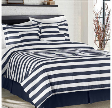 Horizontal Stripe 7-Piece Comforter Set – Queen – White/Navy