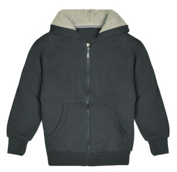 Kids’ Sherpa-Lined Fleece Full-Zip Hooded Sweatshirt Jacket – Charcoal – Large