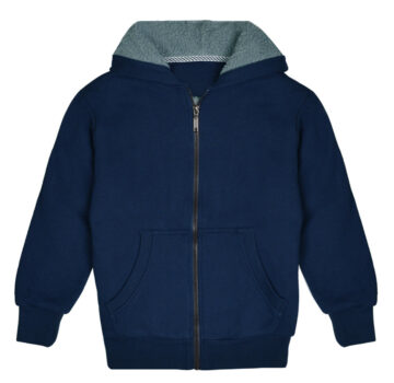 Kids’ Sherpa-Lined Fleece Full-Zip Hooded Sweatshirt Jacket – Navy – Medium