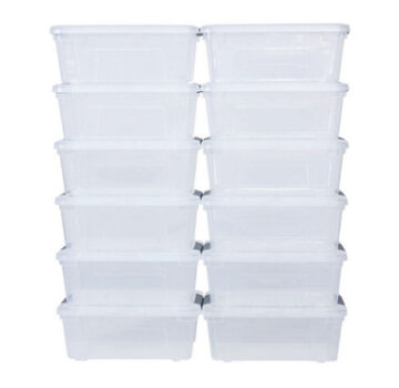 This Latching Stackable Storage Tote is great for keeping your life neat and organized. The transparent design helps you view the contents and the buckle-up latches keep your belongings safe and secure.