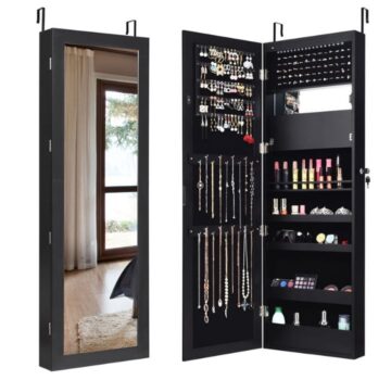 LED Light Mirror Jewelry Cabinet, Wall- or Door-Mounted – Black