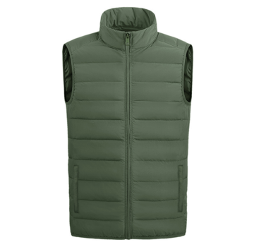 Men’s Full-Zip Lightweight Puffer Vest Jacket – Green – Large