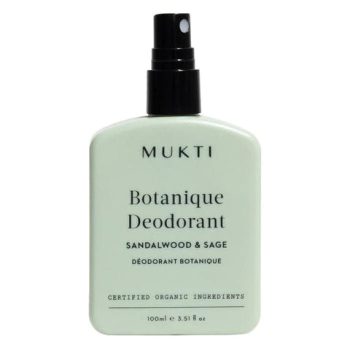 Contains clary sage essential oil so may not be suitable to use if pregnant. Size 100ml You might also like: Mukti Organics Botanique Lotion Mukti Organics Botanique Wash See more Deodorants How to Use 2 Sprays under each arm daily. Reapply after exercising, showering or swimming.
