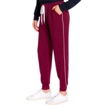 Description P.J. Salvage Ski Club Banded Pant – Port features the rich colors of the season in the softest peachy jersey. This classic jogger has athletic piping on side seams and contrast drawcord. An easy way to bring some festive color to your mix.