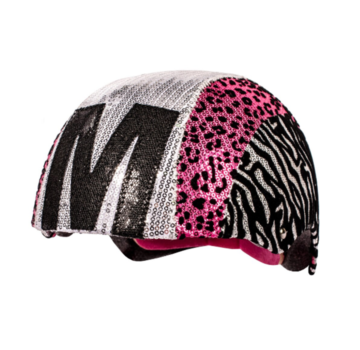 Raskullz Glam Gear Helmet with silver and pink leopard sequins is good for ages 5 and up. It complies with US ASTM and CPSC standards for bicycle helmets. For maximum protection, this helmet must be fitted and attached properly to the wearer's head in accordance with the fitting instructions.