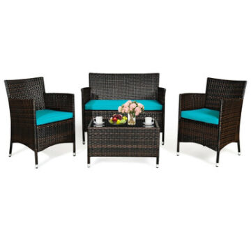 Lounge in comfort and style with the Rattan Outdoor 4-Piece Patio Furniture Set.