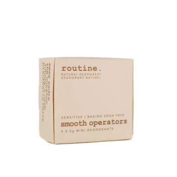 Description Routine Smooth Operators Minis Kit will includes a mini each of baking soda free (BSF): Sexy Sadie, The Curator, Blackberry Betty and Johnny’s Cash. – Great way to explore and find the right one for you~ Size: 5g (each) Final Sale You might also like: Routine Deodorant Natural Cream Deodorant (Baking Soda Free) Routine Deodorant Natural Cream Deodorant See more Deodorants How to Use Use your hands to scoop a small amount and apply under your arms. Ingredients Sexy Sadie (BSF): cocos nucifera oil, magnesium hydroxide, zea mays (corn) starch (non-gmo), kaolin, maranta arundinacea root powder, cera alba (beeswax), theobroma cacao seed butter, butyrospermum parkii (shea) butter, caprylic/capric triglyceride, tocopherol, olea europaea (olive) fruit oil, cetearyl olivate, sorbitan olivate, brassica glycerides, calendula officinalis fruit extract, pogostemon cablin oil (patchouli), helianthus annuus (sunflower) seed oil, rosmarinus officinalis (rosemary) leaf extract, cananga odorata flower oil (ylang ylang), citrus sinensis (orange peel) oil, vanilla planifolia fruit oil, simmondsia chinensis (jojoba) seed oil, michelia champaca flower oil, limonene*, linalol*, farnesol*, geraniol*, eugenol*. *naturally occurring in essential oil.