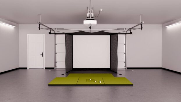 Swing Caddie SC4 Garage Golf Simulator Package – 16′ Wide Garage x 10′ Wide Screen