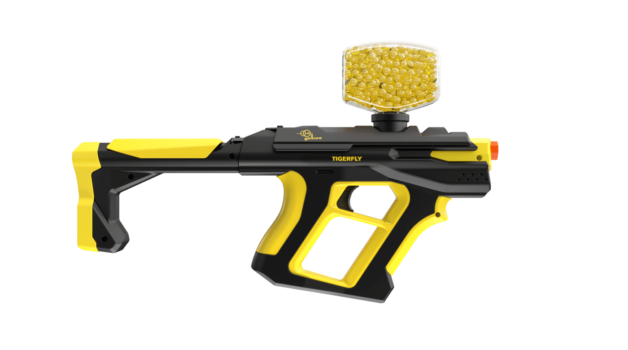 Take safe, mess-free aim at your buddies in a blast of a backyard battle using the Gelbee TigerFly. The TigerFly fires up to 7 BBs every second on full-auto and comes with a removable stock for either pistol- or rifle-style action. Gelbee gel BBs require zero clean-up and only sting enough to let you know you’ve been tagged.