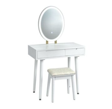 This beautiful Touch Screen 3-Lighting Mode Vanity Set consists of a vanity table and a comfortable, sturdy stool. With three lighting modes (warm, cold, and natural) and adjustable brightness, you can find the exact amount of light for your preferences. With two spacious drawers, you can keep your makeup and beauty tools organized.